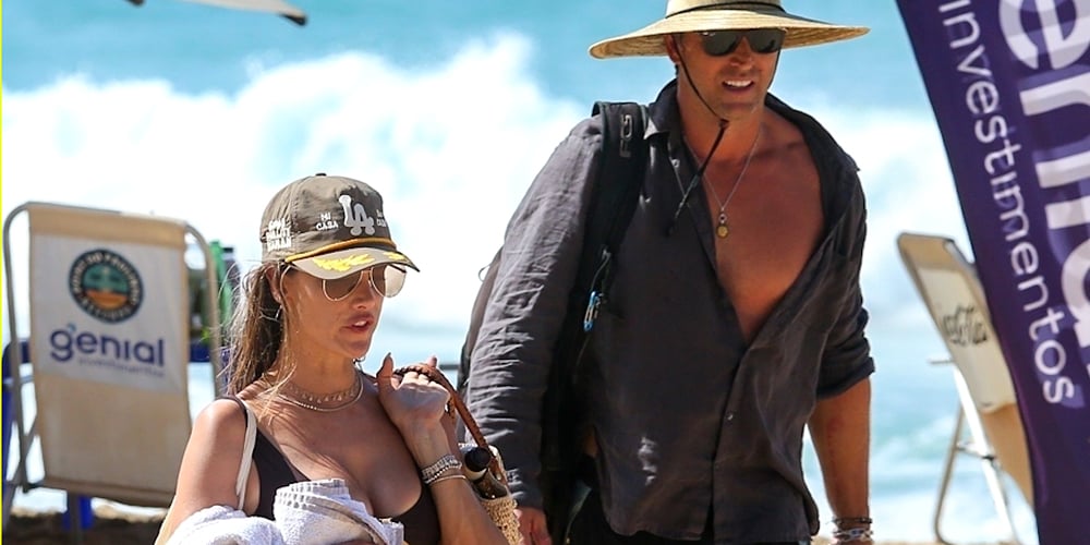 Alessandra ela estava linda em um biquíni preto e um sarongue laranja pendurado nos quadris. Ela complementou com um boné de beisebol de Los Angeles e óculos escuros.