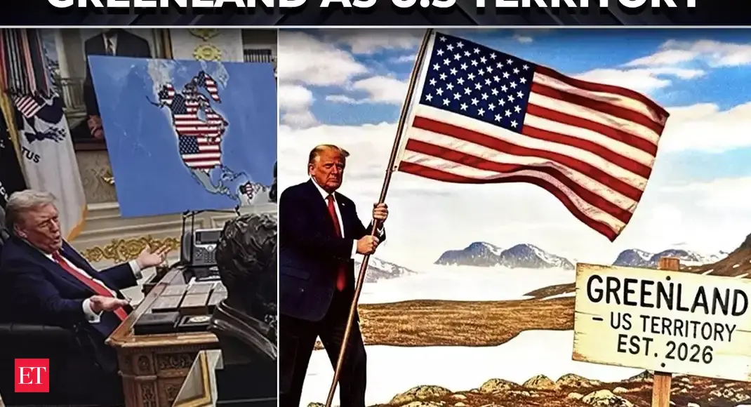 O presidente dos EUA, Donald Trump, intensificou as tensões com os aliados europeus depois de postar imagens em estilo de IA no Truth Social, retratando a Groenlândia e o Canadá nas cores dos EUA. Uma imagem mostra um mapa que dobra a Groenlândia e o Canadá em território americano, enquanto outra mostra Trump plantando a bandeira dos EUA na Groenlândia com JD Vance e Marco Rubio.