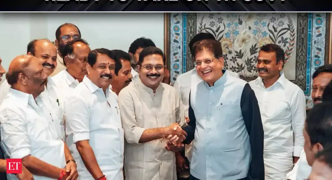 O secretário-geral da AMMK, TTV Dhinakaran, encontrou-se com o responsável eleitoral do BJP Tamil Nadu, Piyush Goyal, depois que o partido anunciou seu retorno à Aliança Democrática Nacional (NDA) antes das eleições legislativas de 2026. A NDA liderada pelo BJP e pelo AIADMK pretende derrotar a aliança governante DMK-Congresso.