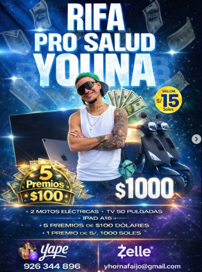 Devido aos constantes check-ups, tratamentos e à impossibilidade de trabalhar normalmente, Yuna decidiu organizar uma rifa de saúde para pagar suas despesas médicas. Através de suas redes ele distribuiu um panfleto convidando seus seguidores a se unirem à causa. Os ingressos custam 15 soles e haverá diversos prêmios, todos visando arrecadar fundos e dar continuidade ao seu tratamento.