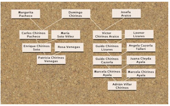 Ele também é mencionado como tendo um relacionamento distante com a deputada e candidata ao Senado pela Renovação Popular, Patricia Chirinos Venegas. Na mesma linha, menciona-se Enrique Chirinos Soto, pai do parlamentar, que escreveu um livro com Guido Chirinos Lizaras, avô do investigado.
