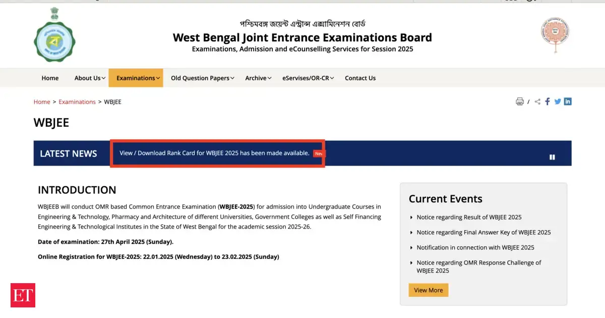 O West Bengal Joint Entrance Examinations (WBJEB) é lançado para três principais testes de admissão (Jeka), Sips-UG-UG) – para a sessão de 2025.