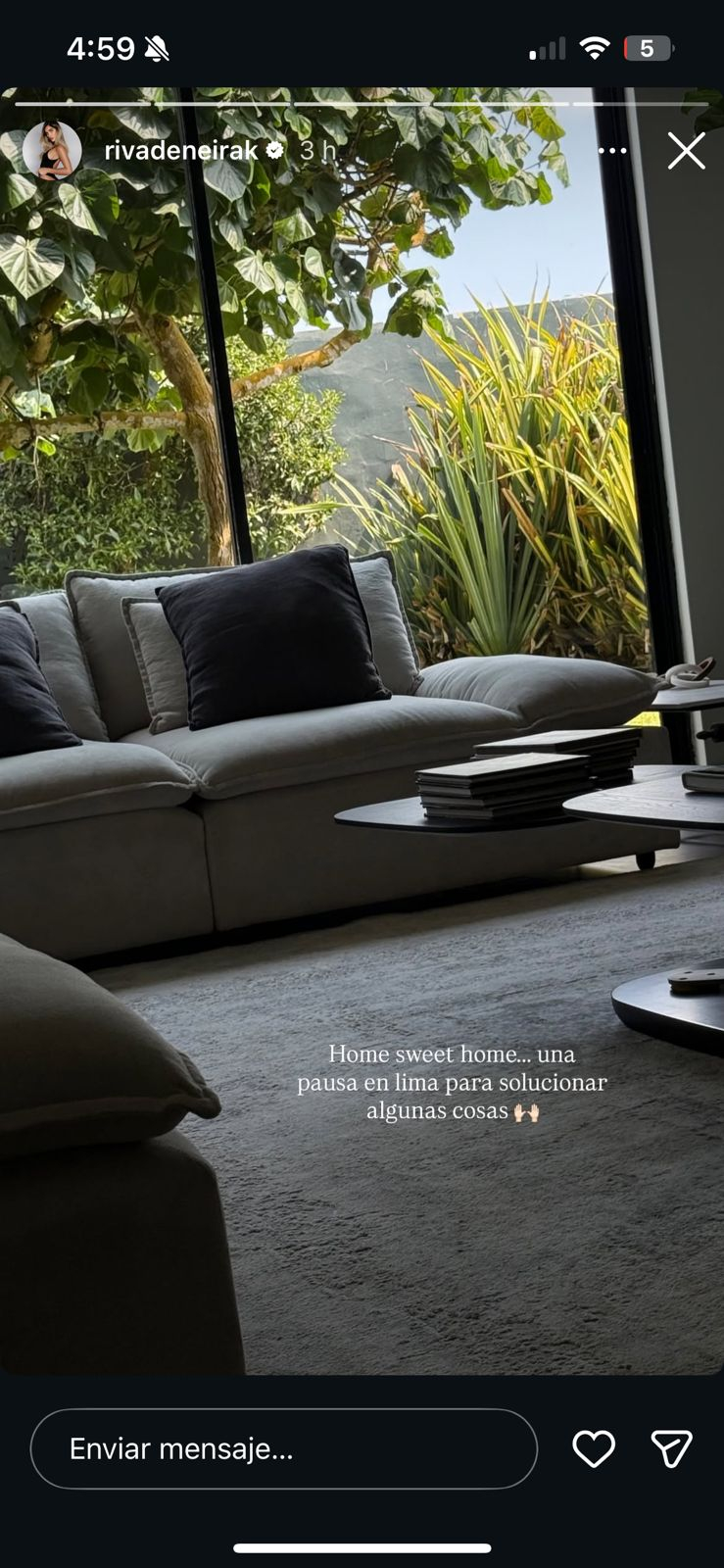 “Lar doce lar… uma pausa em Lima para resolver algumas coisas”, disse ele, com uma foto de Mario Hart e seus filhos na sala de estar, embora quase toda fora de cena.