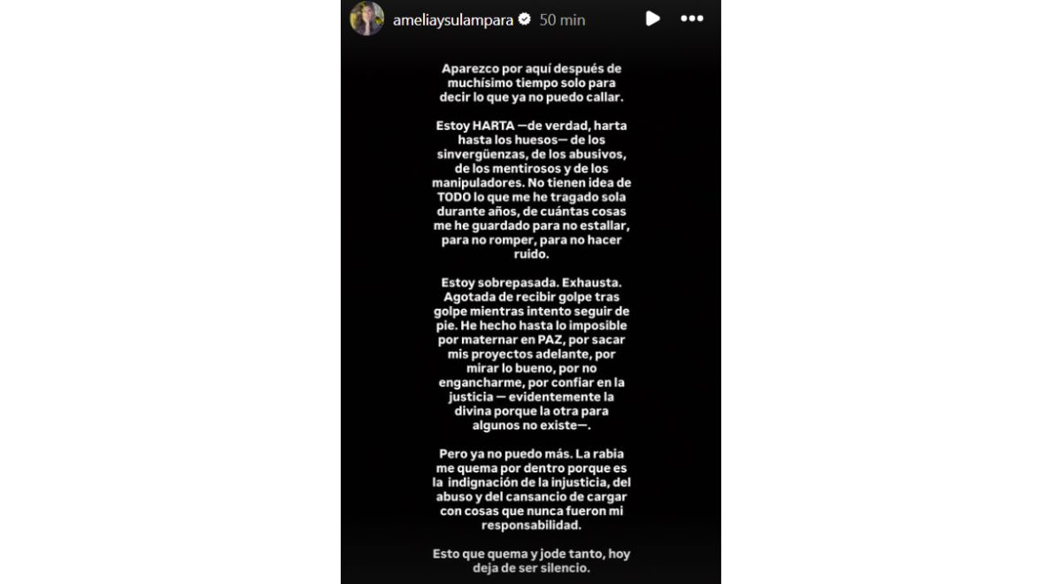 Através de suas histórias no Instagram, sua ex-mulher Renato Tapia Ela a surpreendeu ao compartilhar uma declaração de que estava muito preocupada com uma situação pessoal. Embora ela não tenha revelado a condição do pai de sua filha, sua mensagem sugeria isso.