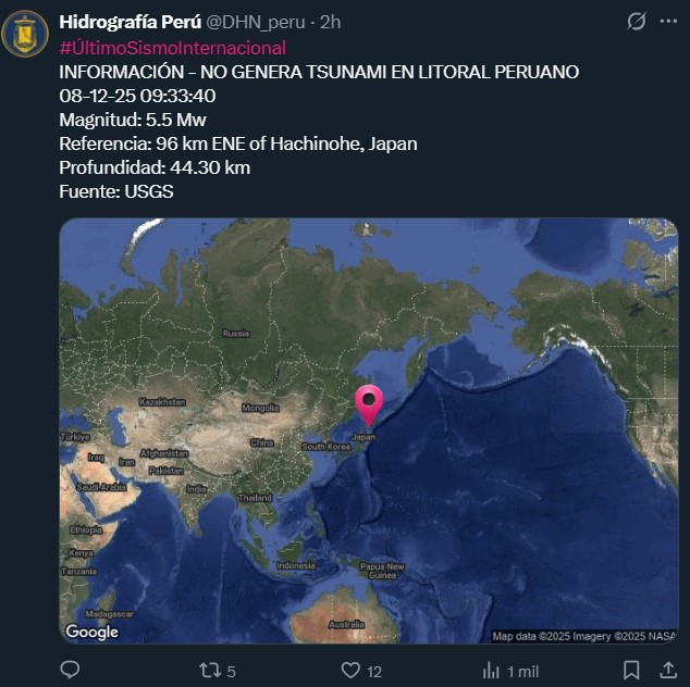 O anúncio foi feito pela Diretoria de Hidrografia e Navegação da Marinha do Peru O terremoto de 7,6 graus no Japão não gera um tsunami na costa peruana, mas aumentará a vigilância ao longo de toda a costa peruana.. O alerta surge depois de o país asiático ter ativado um alerta para ondas atípicas ao longo da costa.
