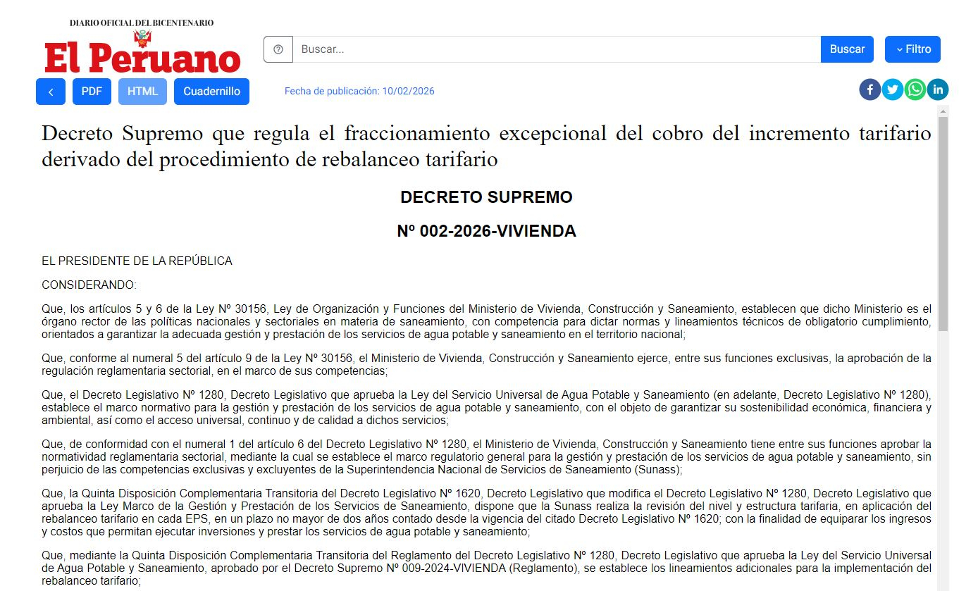 A reconfiguração é responsiva Elevados custos operacionais e necessidade de garantir a continuidade e sustentabilidade do serviço. Conforme explicado pela empresa e fiscalizado pela Superintendência Nacional de Serviços de Saneamento (SUNAS), o aumento faz parte da atual estrutura tarifária. O ajuste da taxa de água não será fornecido em breve. Sedapal Confirmado que os usuários podem dividir o valor Parcelas mensais até dezembro de 2027.