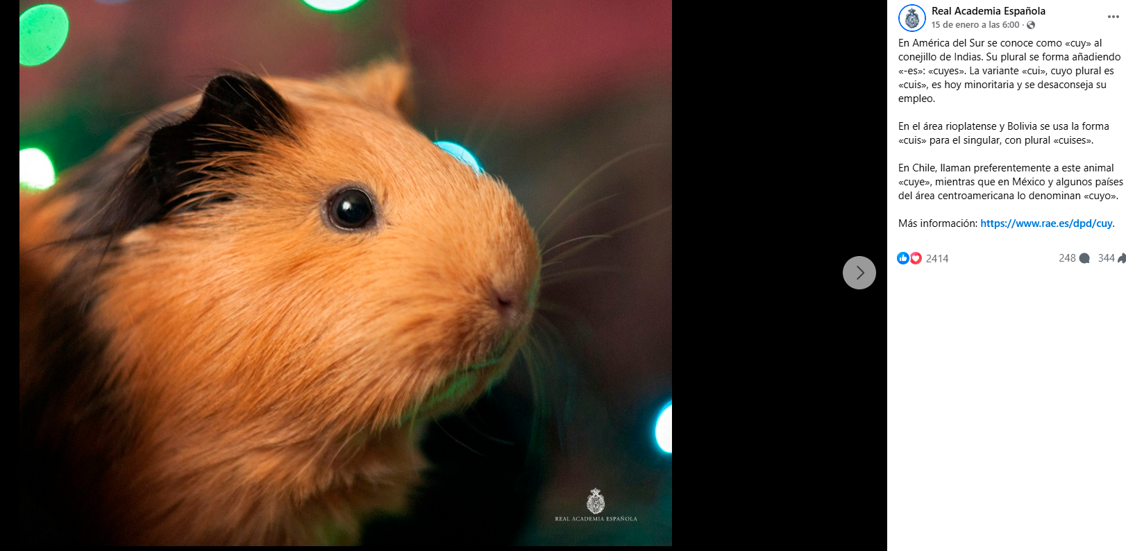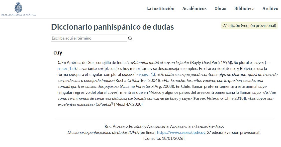 Como escrever “cuy” corretamente de acordo com a RAE?