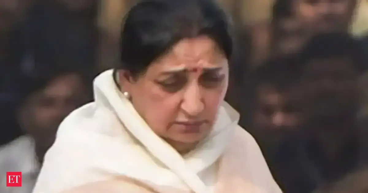 Ela chegou à residência oficial de seu falecido marido no sul de Mumbai, Devagiri, com seu filho Parth nas primeiras horas da manhã.