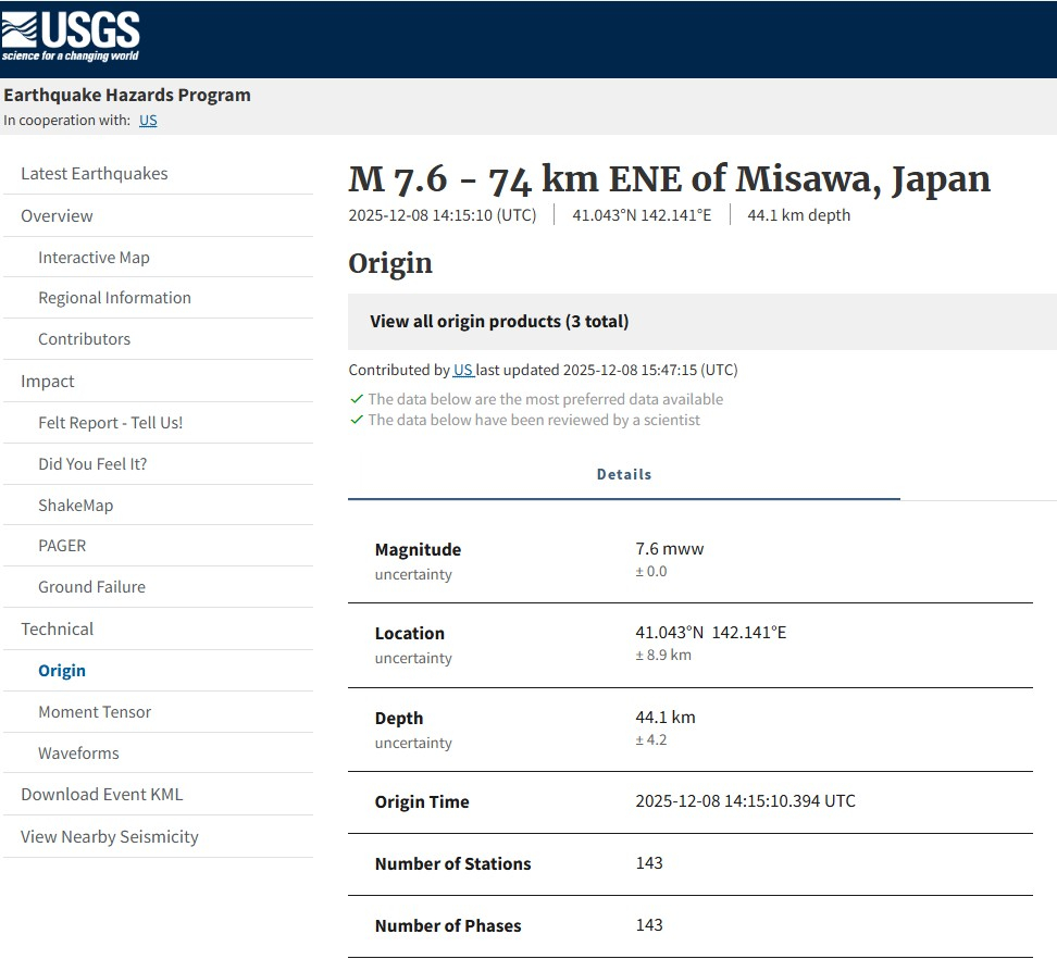 Esta segunda-feira, 8 de dezembro, um poderoso terremoto de magnitude 7,6 atingiu o Japão, desencadeando um alerta de tsunami em diversas áreas da região nordeste do país. O movimento do terremoto registrado no Oceano Pacífico causou alarme internacional.