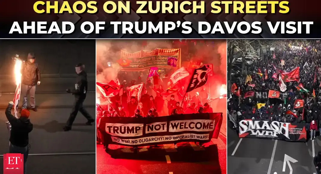 Milhares de manifestantes reuniram-se em Zurique contra o presidente dos EUA, Donald Trump, e o Fórum Económico Mundial no início da cimeira de Davos. Os manifestantes cruzaram a ponte Münster, em Zurique, carregando faixas com os dizeres “Trump não é bem-vindo” e cartazes declarando “A Groenlândia não está à venda”, uma referência aos repetidos comentários de Trump sobre a tomada do controle da ilha do Ártico.