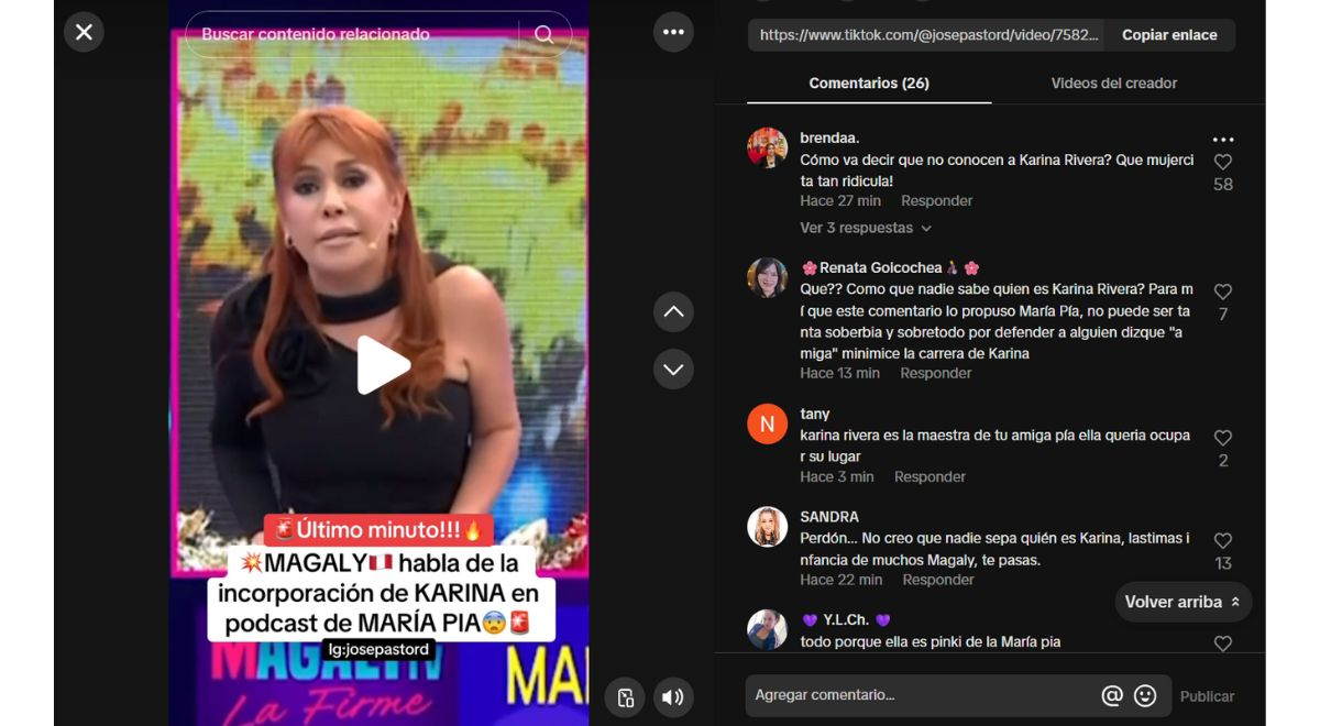 Usuários criticam Magali Medina por falar sobre Karina Rivera. Fonte: TikTok.
