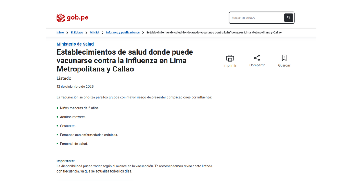 Você pode ver: O MINSA toma medidas sanitárias rigorosas em dois departamentos do Peru após a gripe A H3N2: Você está na zona de vigilância?