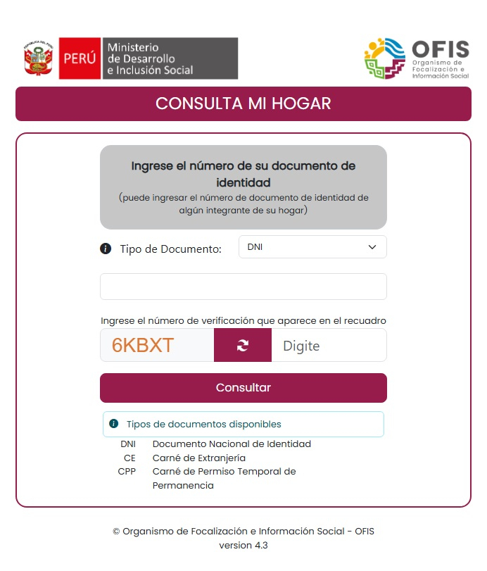 Para verificar se você é membro do SISFOH acessando a plataforma oficial do Ministério do Desenvolvimento e Inclusão Social (MIDS). O processo é gratuito e você só precisa do seu documento de identidade para seguir estas etapas:
