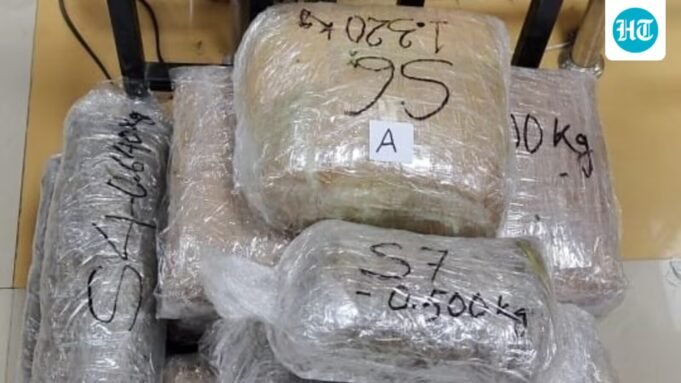 Dois passageiros foram presos por transportar suspeitas de contrabando (cannabis/ganja) no aeroporto Imphal em Manipure.