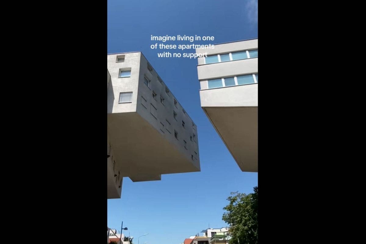 O usuário do Tiktok @edagonage postou que o vídeo tem uma fileira de apartamentos modernos na capital austríaca que parece estar andando no ar sem qualquer apoio visível. O clipe coletou mais de 615.000 visualizações desde que compartilhou o clipe em 5 de julho.