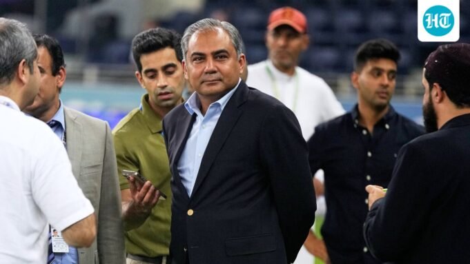 O chefe do Conselho Asiático de Críquete Mohsin Naqvi está sob o scanner ao longo do troféu da Copa da Ásia. (AP)