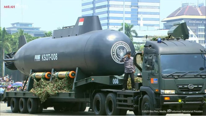 Jacarta, Viva A principal celebração do 5º aniversário do Exército Nacional da Indonésia (TNI) tornou -se o mais recente equipamento de defesa do Memorial Nacional (MONAS), Central Jacarta, domingo, 1 de outubro de 2021. De The Bels of War Vehicles, a atenção do público foi atraída em uma imagem submarina inumanada chamada Ksot -008.