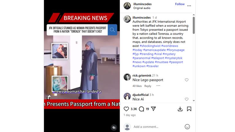 De acordo com todos os registros, mapas e bancos de dados conhecidos, não existe torsenza. Várias inspeções dos fatos constataram que a história do Passaporte Torenza era completamente falsa. O vídeo viral de mulheres pousando no aeroporto JFK com Pass Torenza é gerado por IA. O clipe foi pensado para retratar o cenário realista do aeroporto. O aplicativo não oferece suporte a nenhum registro oficial do JFK ou das autoridades de imigração. A falsa história de uma mulher pousando no aeroporto JFK supostamente se inspira na lenda da cidade do “homem de Taured” e no caso de Conman John Zgrus, que foi preso no Japão em 1959 usando um passaporte falso da nação inventada.