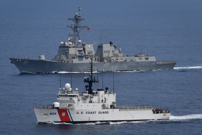 3 de 3 | O USS Pinconi Pal, que destrói o diretor de míssil da Guidad pela classe Burke, está ao lado do cortador de guarda costeira dos EUA Northland em 2021. A Força-Tarefa de Integração Conjunta foi implantada para a responsabilidade do sul para apoiar a missão do Northland e do Pinconi US Southern, que inclui drogas desnecessárias para o tráfego de medicamentos para os curiosos. Especialistas da Terceira Classe Eric A. Fotos de Arquivos por Pessoas/Marinha dos EUA