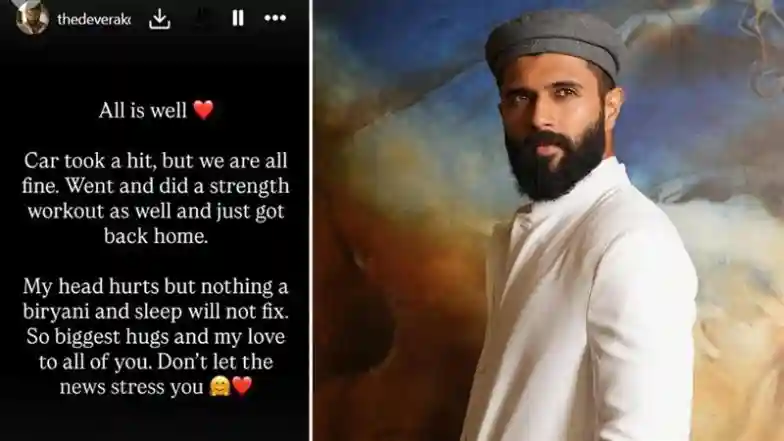 Vijay, colisão ileso, teria se mudado para o carro de um amigo e continuou o caminho para Hyderabad.